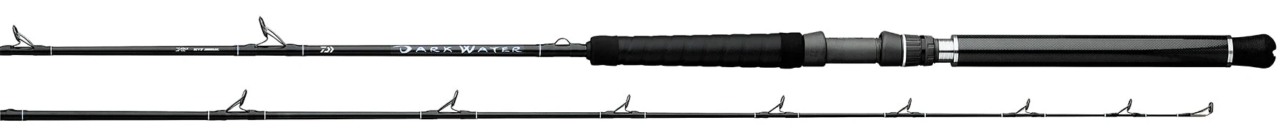 Daiwa's X45 bias wrap technology eliminates blank twist, unleashing explosive hook-setting power and reducing angler fatigue while the regular action help keep fish pinned. With the Darkwater series, you'll be armed with the ultimate fusion of power, precision, and durability to take on the toughest offshore challenges. The Darkwater series is packed with cutting-edge features that put you in control. Casting models boast a rugged wrapping grip, giving you a secure hold even when the action gets wet and wild. Trolling models feature Daiwa's Carbon Slick lower grip, making it effortless to lift the rod from the holder when a monster strikes. And with Fuji K-Guides, you'll enjoy tangle-free performance and unbeatable durability. Join the offshore revolution with Daiwa's Darkwater rod series - the ultimate arsenal for serious offshore anglers.