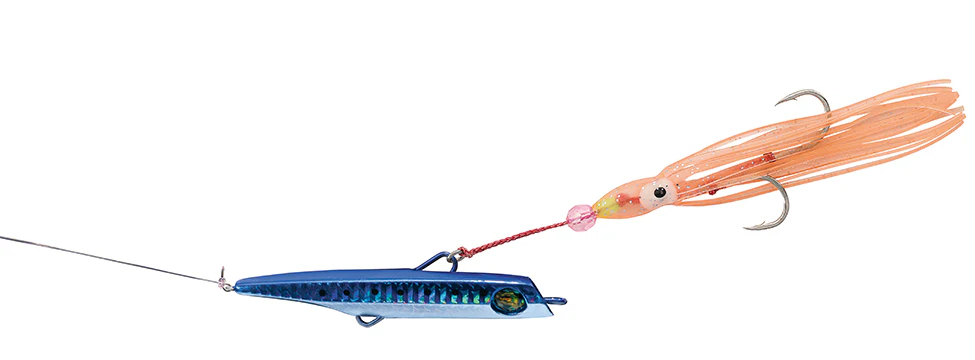 Inchiku Style Jig with a sleek bullet design, gets the jig down quickly to the targeted strike zone. Multiple anchor points provide a selection of rigging options. Slower presentation works best.